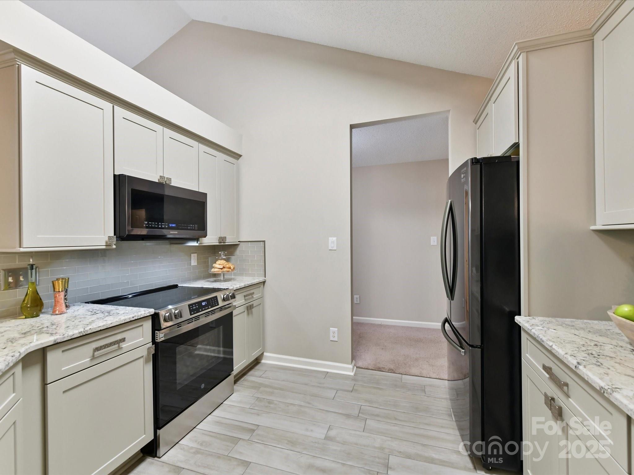 Compact luxury at its finest! Rare opportunity to own a meticulously maintained sun-filled (east/west sun exposure) Fortis-built 1-story home. This stunning haven boasts 27ft cathedral ceilings and modern upgrades inside and out: fresh paint, plush carpet, gorgeous tile. Completely renovated kitchen offers custom cabinetry, granite counters, Samsung appliances (2018) refrigerator, dishwasher, microwave, and NEW GE slide-in range (7/2025). Plantation shutters and custom cordless window blinds. Timeless light fixtures and LED lights. Roof, gutters, downspouts (4/2025). HVAC (2021). Furnace (2021). Water heater (2017). Washer (2022)/Dryer to convey. 2-car garage. Level lot in cul-de-sac location with handsome mature trees. All day, every day, the new homeowner will enjoy calling this special abode home!