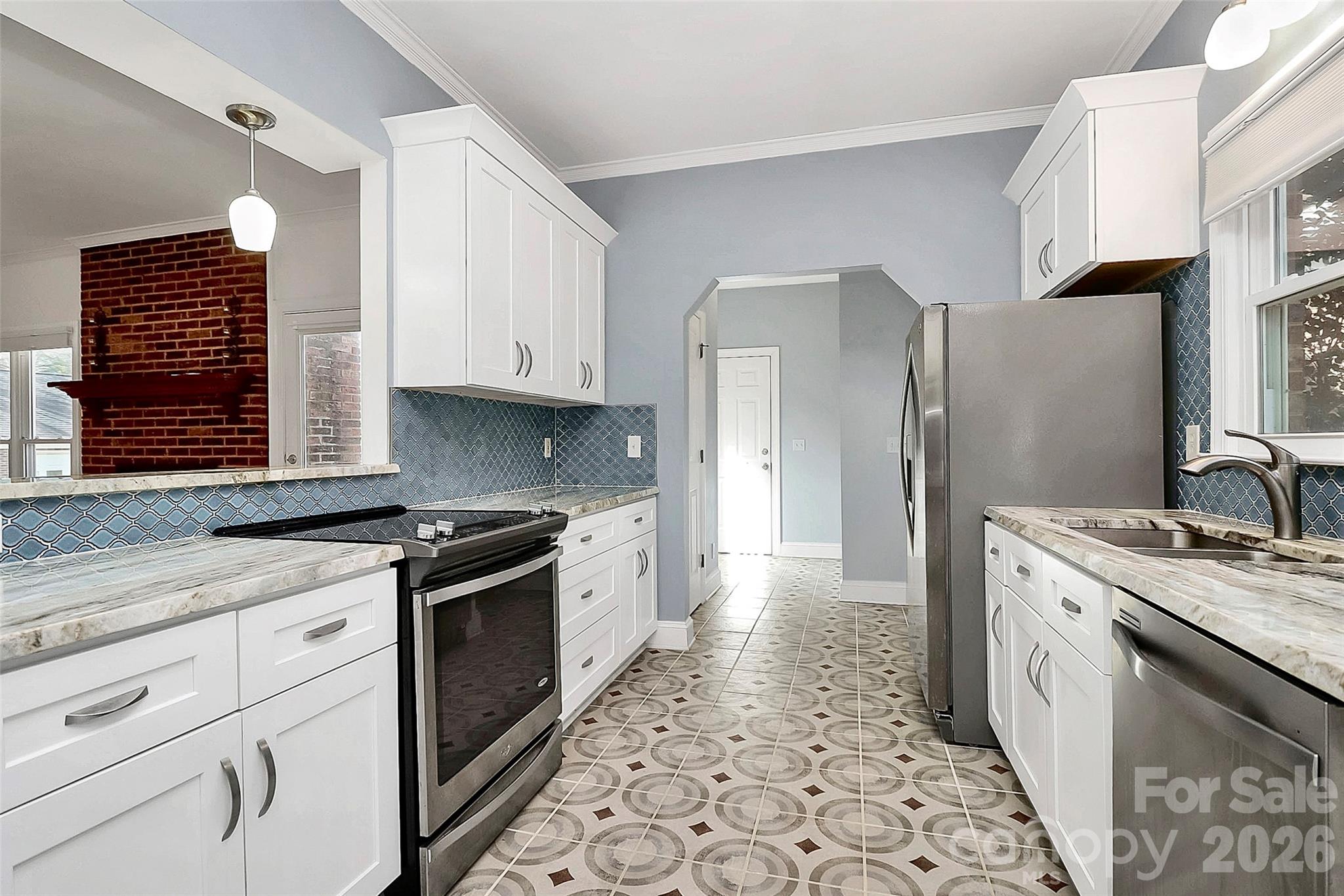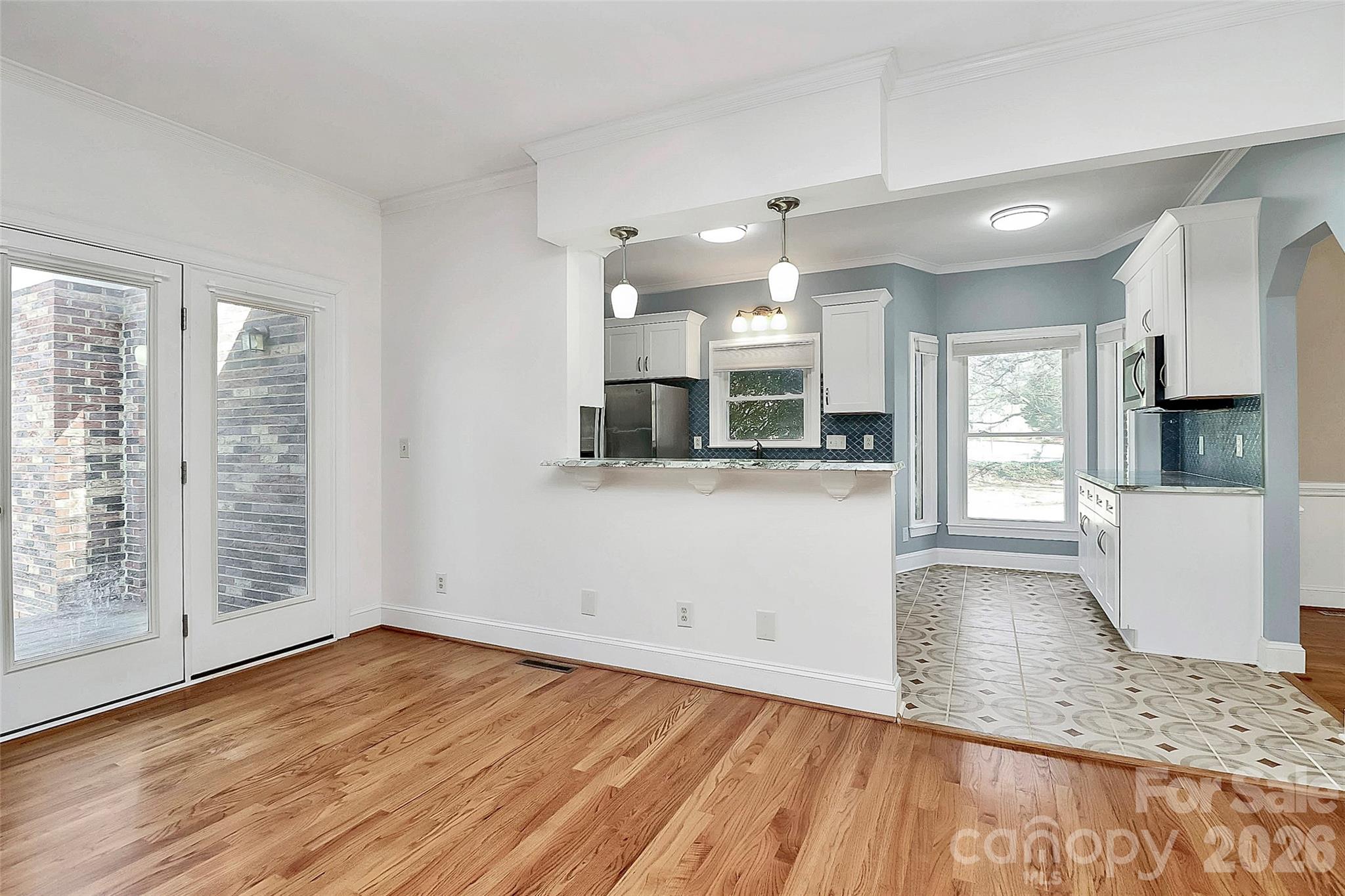 Charming 1.5 story brick home on corner lot in the desirable community of Mintwood Place with NO HOA. Updated kitchen with granite, SS appliances and breakfast bar. Open floorplan including spacious great room and formal dining room. Primary bedroom on main level. You are going to love the updated spa-like en-suite! Two addl BRs on main level with full bath. Upper level features bonus room, 4th BR and full bath. Can be used as office, in-law suite or home-school space. Deck overlooks big back yard and is perfect for entertaining. Love the side porch entrance that allows for you to sit, relax and talk to walking neighbors. Detached garage (2 car) has electricity and can also serve as workshop space. Lots of improvements including the spa-like primary bath, Tankless WH, updated kitchen, resurfaced deck and fenced yard. Freshly painted and carpets cleaned. Refrigerator and W&D stay! Close to shopping, restaurants and local businesses in the charming town of Mint Hill. Easy walk to the Mint Hill parade and town activities. A must see! (Garage sf total is based on attached garage (500 sf) and detached garage (615 sf). Seller offering floor allowance for upstairs bonus/flex rooms.