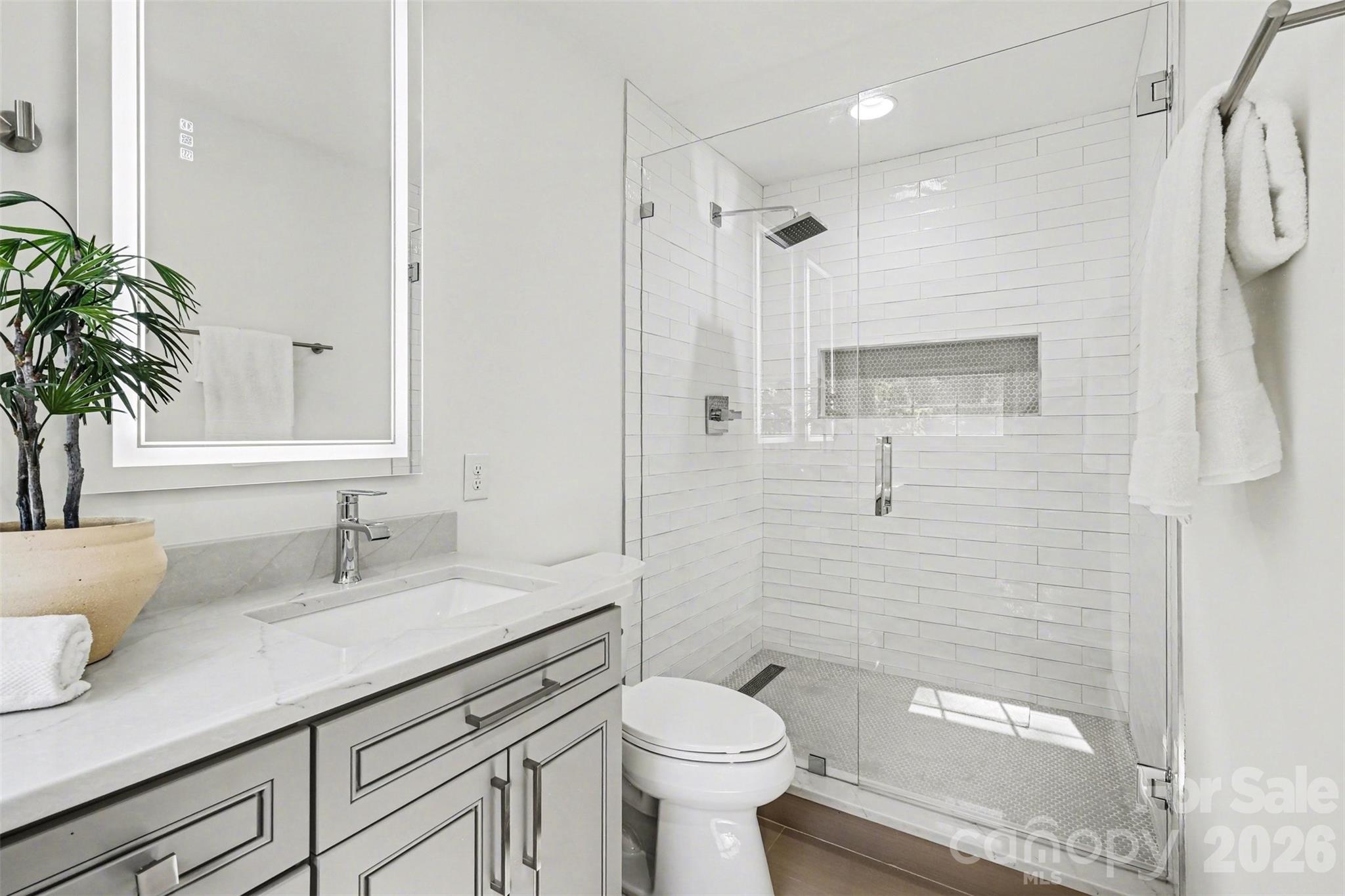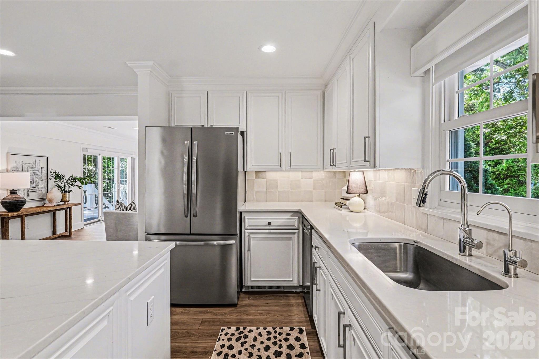 All bathrooms have been fully remodeled with elegant tile work, stylish cabinetry, and quartz countertops. New luxury vinyl plank flooring runs throughout both levels, complemented by added recessed lighting across the home. Additional upgrades include all-new windows and exterior doors, as well as a newly expanded driveway with extra parking.