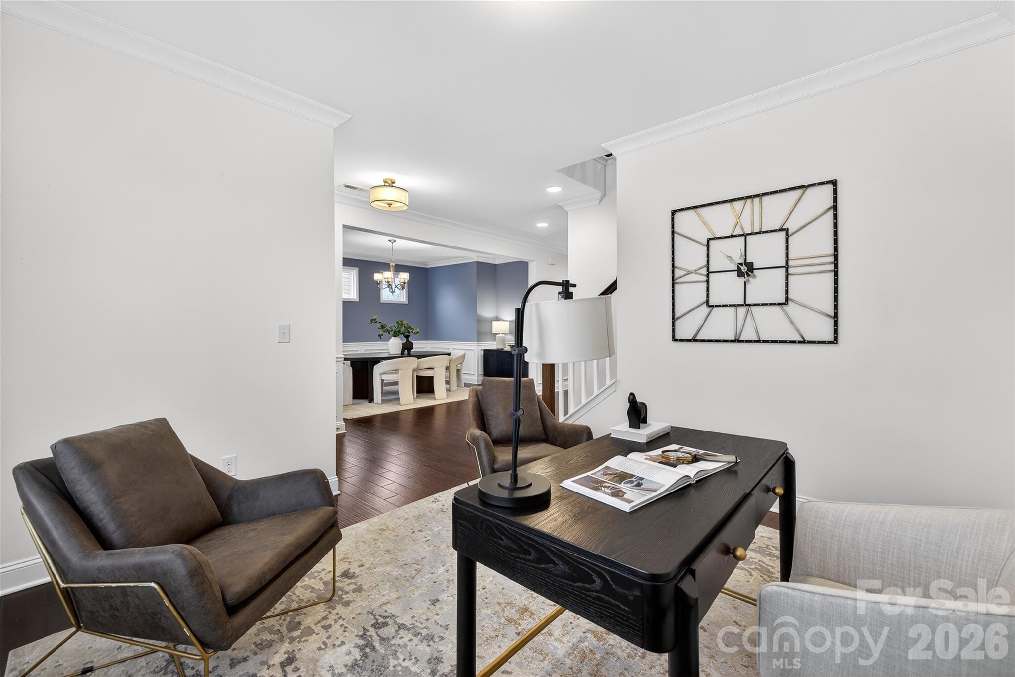The open-concept layout is designed for effortless living and entertaining, featuring a main level guest suite, private office, inviting great room, and seamless access to a screened porch and extended patio. The designer kitchen impresses with an oversized island, gas cooktop, wall ovens, walk-in pantry with custom glass door, and abundant cabinetry. A functional drop zone enhances everyday organization.