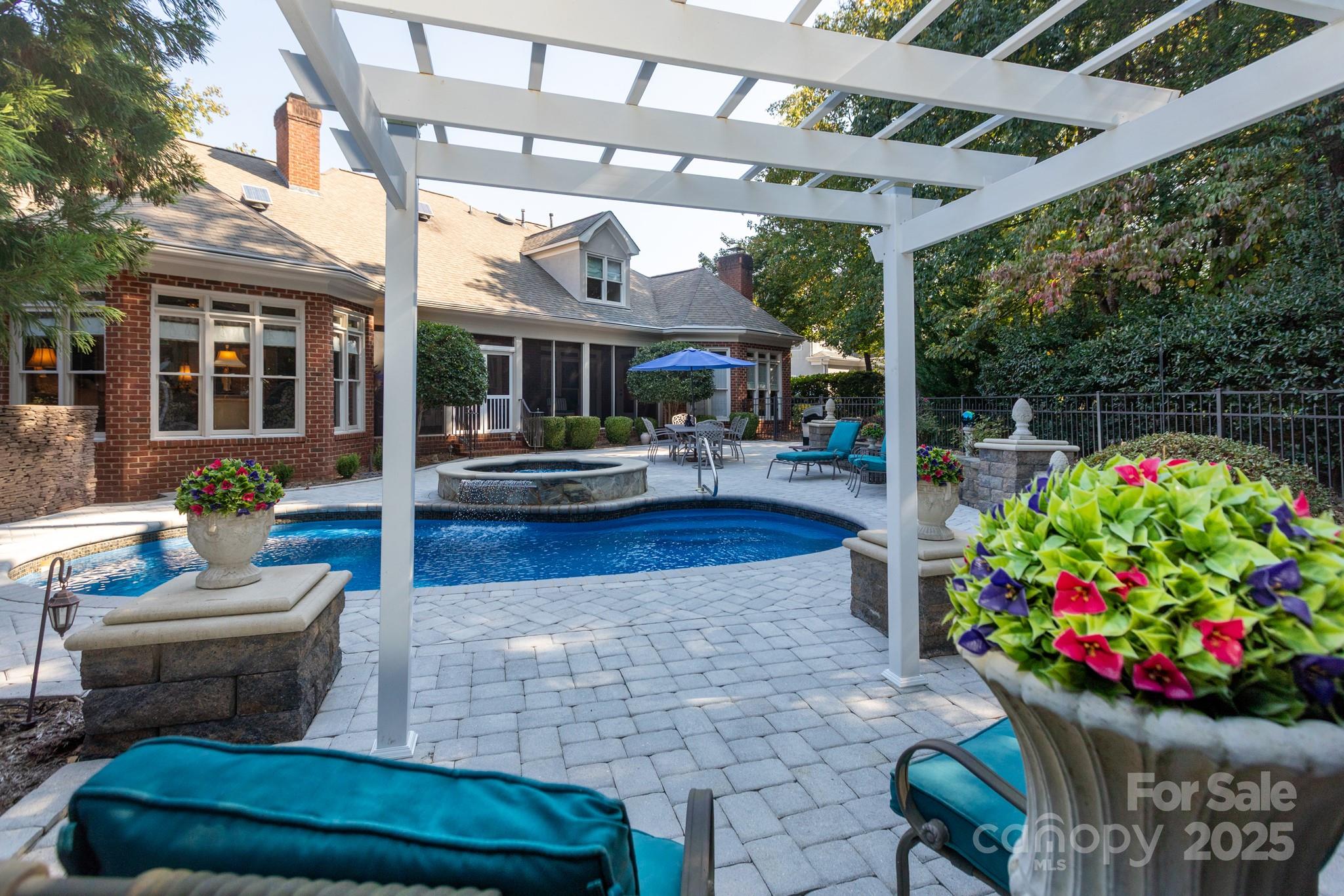 Entertain or unwind year-round in your private backyard oasis, featuring a saltwater pool and heated spa with dual pumps and filters, stunning hardscaping, and lush, manicured landscaping offering total privacy while enjoying the tranquil screened porch that effortlessly extends your living space outdoors.