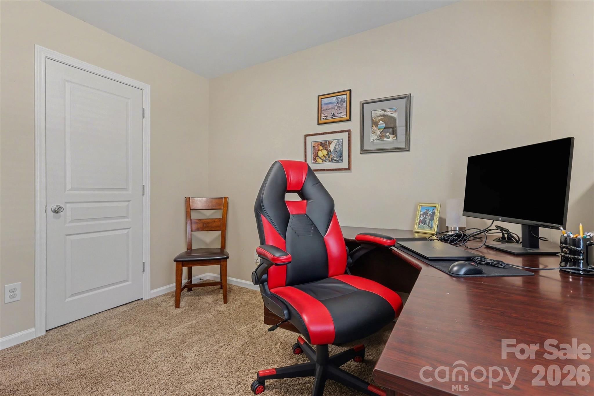 The formal dining/flex space includes wainscoting, custom-built shelving, and an electric fireplace--offering both character and versatility. The kitchen has been updated with granite countertops, soft-close cabinetry, and includes a full stainless appliance package with gas range, microwave, dishwasher, and refrigerator.